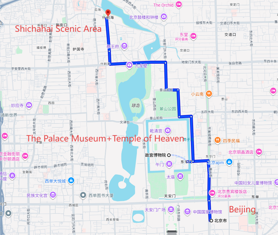 Beijing tour:Free all-day private pick-up;self-meet if outside area.Free time for Qianmen Street.Tailored car for gourmet tour.Meals self-paid.Stay at Beijing Happy-Valley University of Technology Manxin Hotel.Contact support for questions.