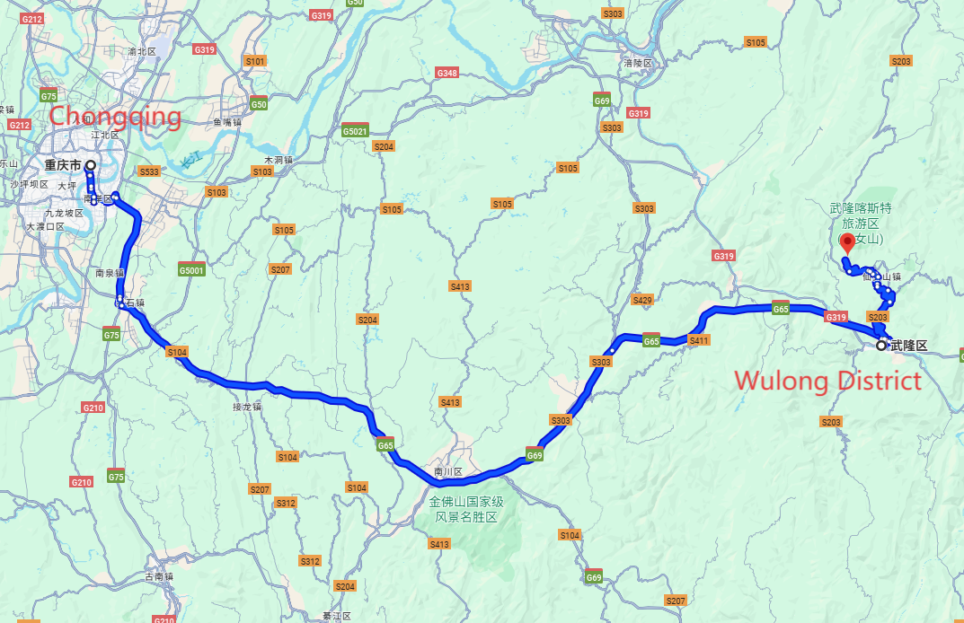 Driver takes you to Wulong.Lunch included.Visit Three Natural Bridges&Fairy Mountain.Dinner self-arranged;3hr return to Chongqing.